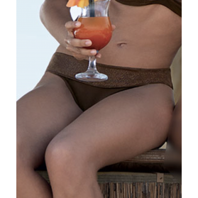 Slip en maille unie devant et dos. Revers à la taille pour faire varier la hauteur du slip avec une légère irisation dorée.