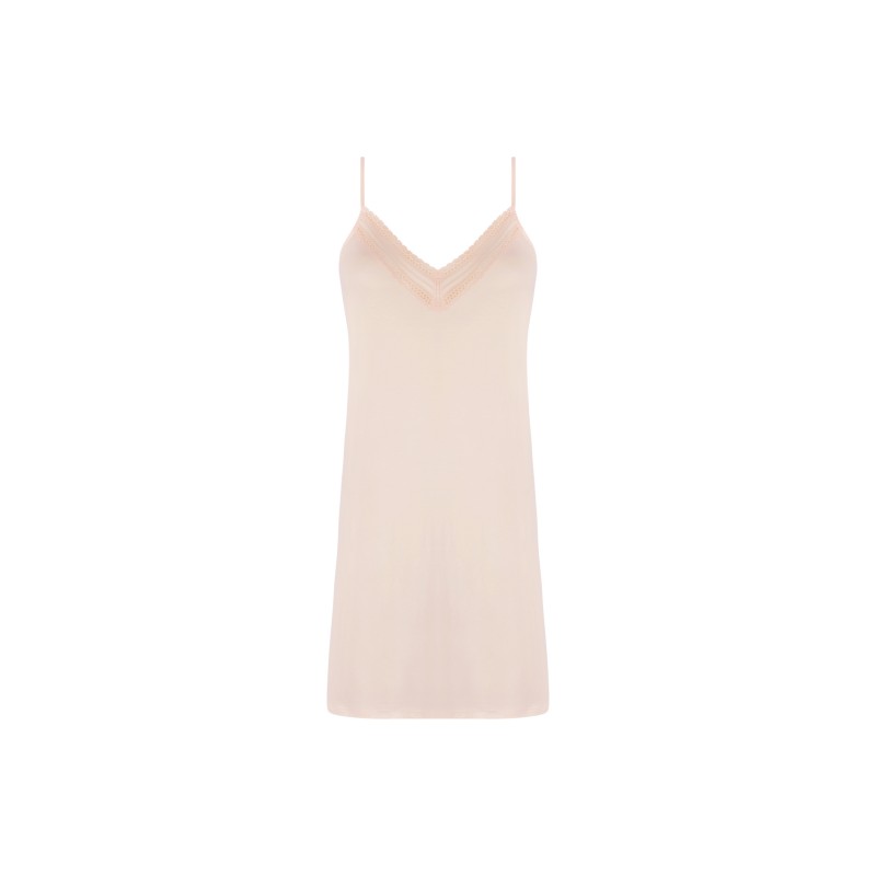 Nuisette à bretelles fines légèrement évasée sur le bas. Longueur dessus genou.