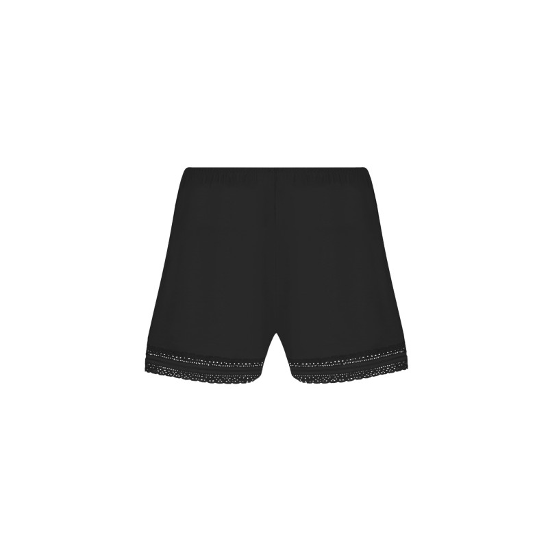 Pièce de lingerie légère qui laisse la jambe découverte. A coordonner avec un caraco.Shorty en maille unie avec incrustation d'un galon dentelle à la taille et aux cuisses dos.