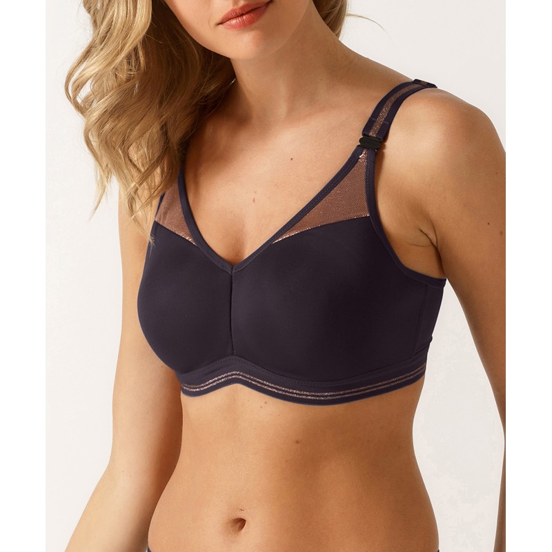 Respirabilité de la matière spacer des bonnets, séchage rapide, bretelles multi-positions, tout est fait pour assurer la plus grande performance. Rassurant par sa couvrance et son parfait maintien, le soutien-gorge spacer avec armatures de la ligne INITIALE permet la pratique de tous les sports en toute confiance, jusqu’au bonnet H. Une performance inégalée dans l’offre sport. Le rebond est réduit au maximum et la silhouette conserve sa féminité. Une combinaison inédite mêlant performance et confort, au style résolument chic et féminin.